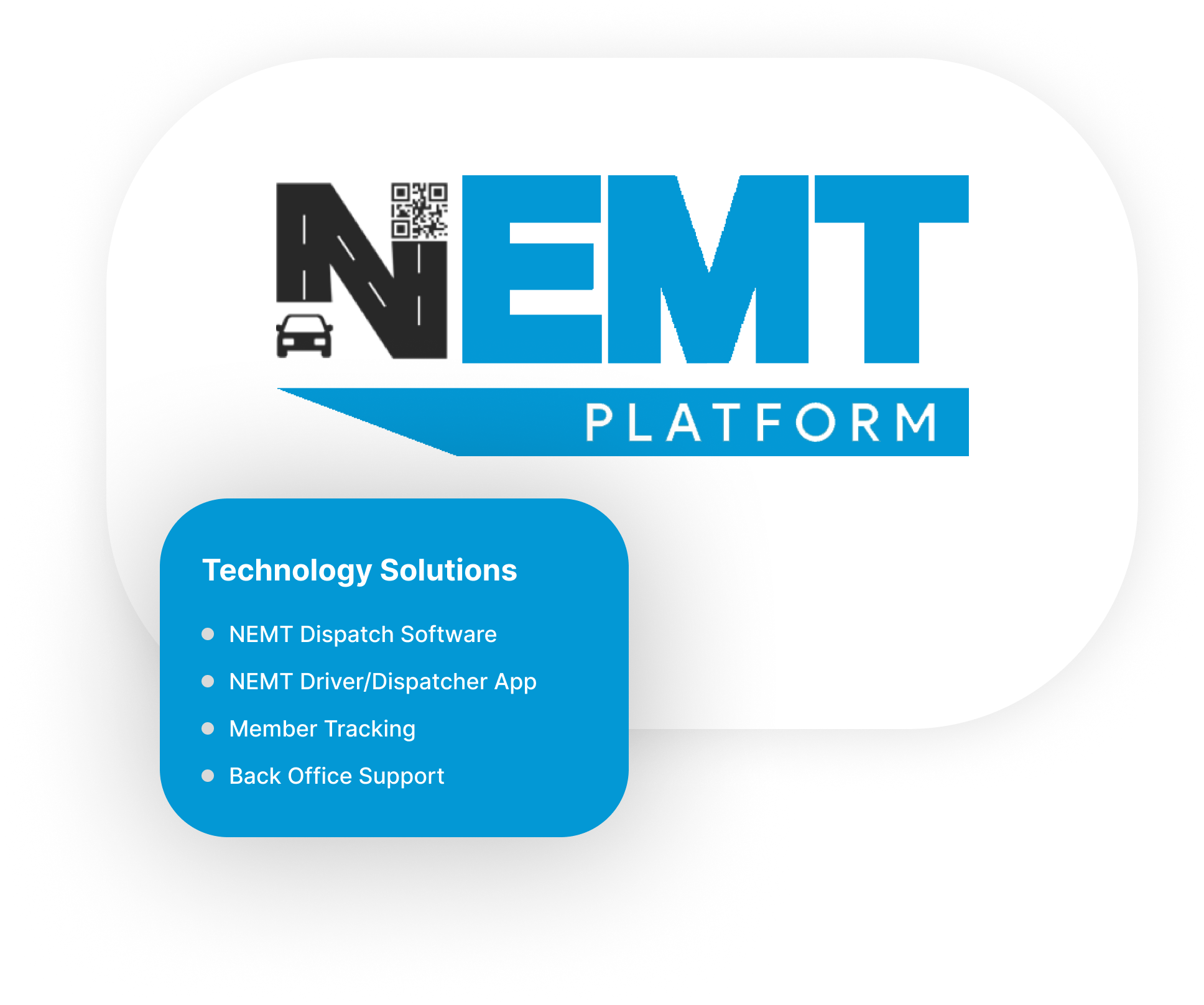 We're proud to partner with NEMT Platform, the leading provider of NEMT Dispatch Software & Complete Back Office Support. Their advanced platform, featuring a NEMT Pro driver app, NEMT dispatcher app, NEMT provider portal, and member tracking, empowers us to deliver efficient, reliable, and compassionate non-emergency medical transportation. With NEMT Platform's technology as our backbone, we streamline operations, optimize routes, and ensure every trip runs smoothly, putting patient needs at the forefront. Experience the difference of a trusted partnership and ride with confidence, knowing you're in good hands.